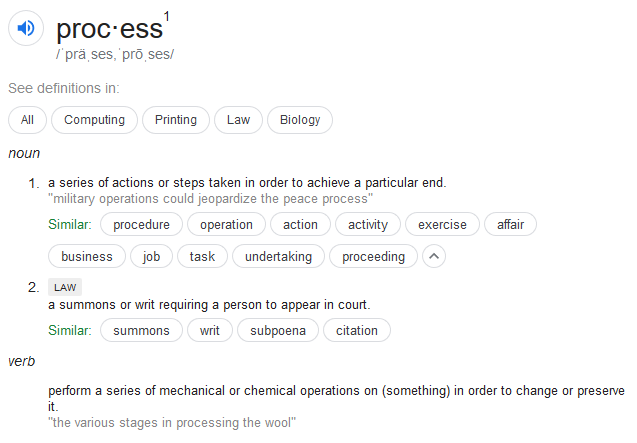 Can you find the word “process” as one of the synonyms of the word “framework”? It is so clear that Scrum is not a process. Again, let’s see what the dictionary says about the definition of “process”: